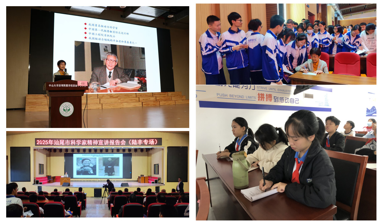 本次报告会特邀彭湃烈士孙女、彭士禄院士之女彭洁研究员,作《彭士禄的故事》专题宣讲。报告会先后走进深汕中心学校、新城中学、汕尾中学、海丰红城中学、陆河未来中学、陆河实验学校、陆丰华美学校、春源双语学校及甲子中学,线上线下共约14万名师生参加。